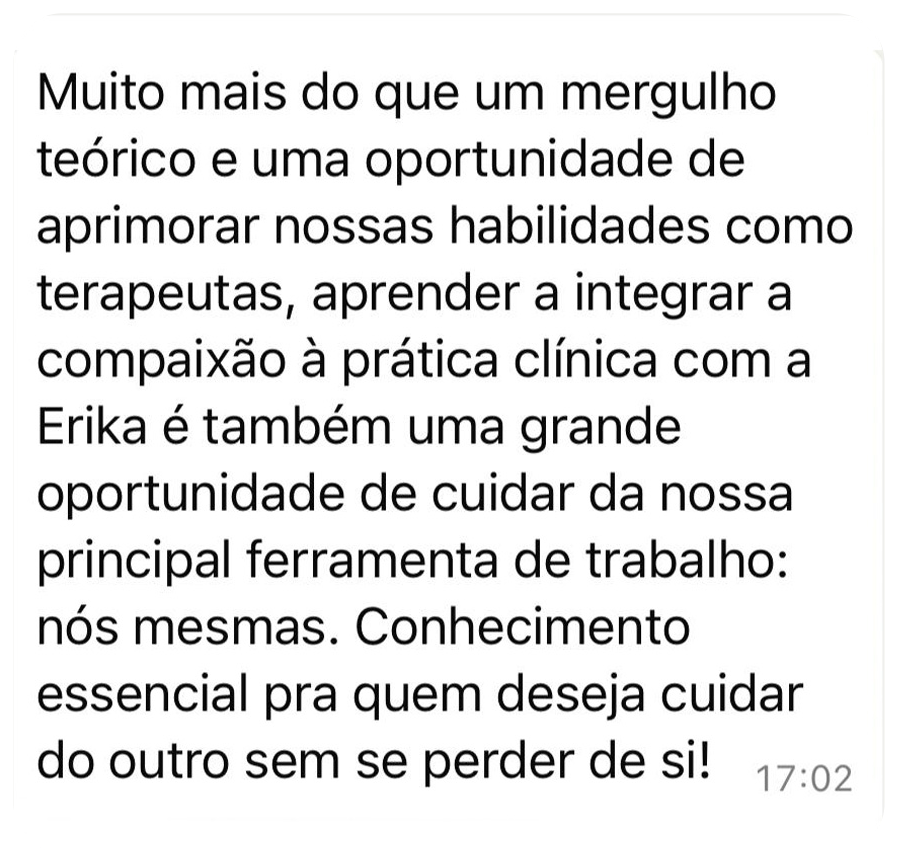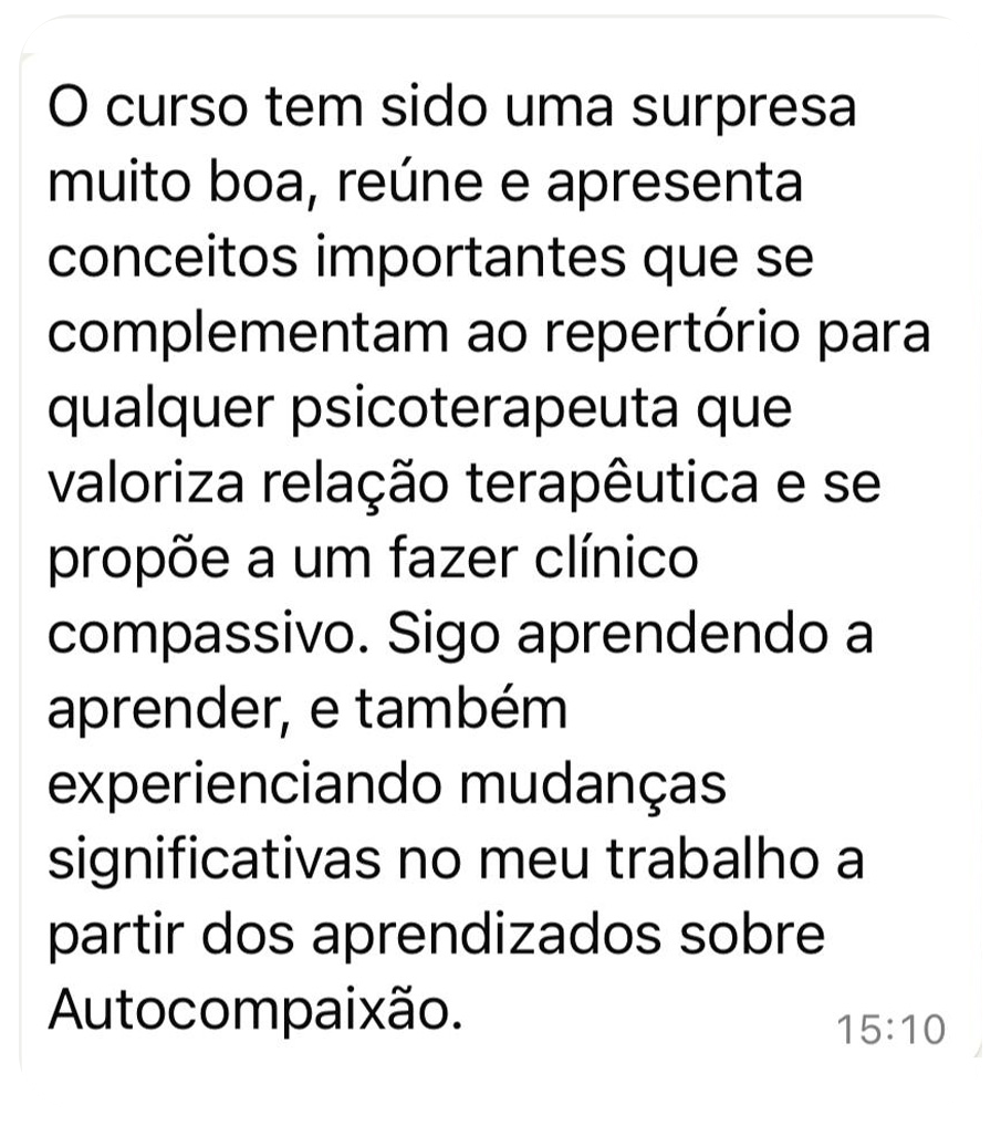 Um caminho clínico de alta relevância e sustentado por evidências científicas, capaz de reduzir a autocrítica, o estresse e a ansiedade, além de ampliar resiliência emocional, bem-estar e satisfação com a vida.